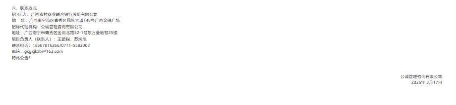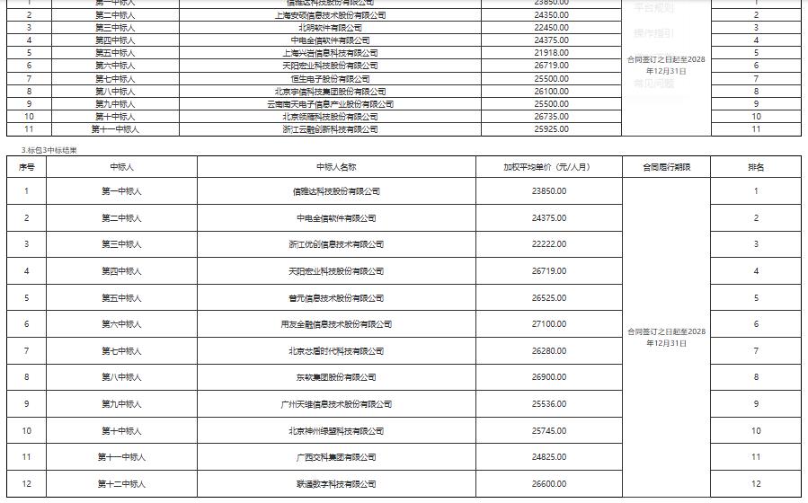 广西农村商业联合银行股份有限公司2026-2028年度核心类、信贷及风险类、经管及财务类系统软件开发人力外包服务框架入围采购项目中标结果公告